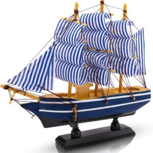 Sailboat Model Decor, Wooden Sailing Boat Nautical Decor 7″x8″ Model Ship for Ocean Theme Party and Room Decoration, Photo Props