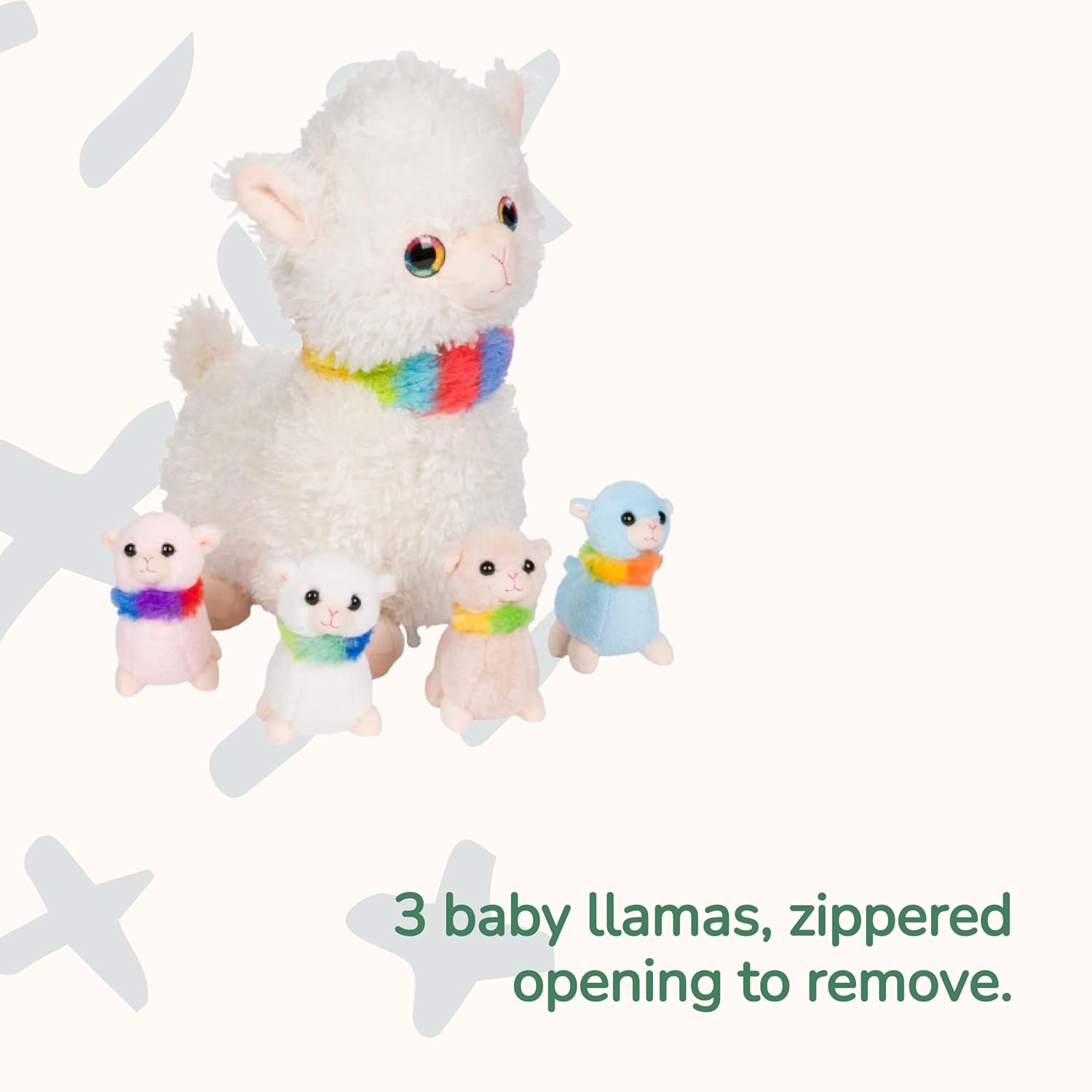 Llama Stuffed Animals Set of 5 includes Stuffed Mommy Llama with 4 Baby Plushies for Kids with rainbow scaes – Cute Toys and gifts for girls, ideal gift for 3 year old girl & above