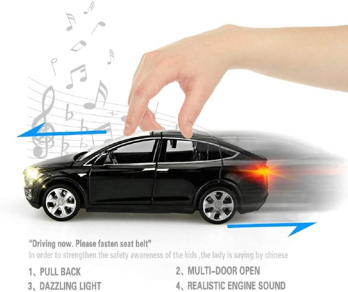 Toy Car Model X, Pull Back Car Toys Alloy Vehicles with Lights and Sound 1:32 Scale Model Car (Black)