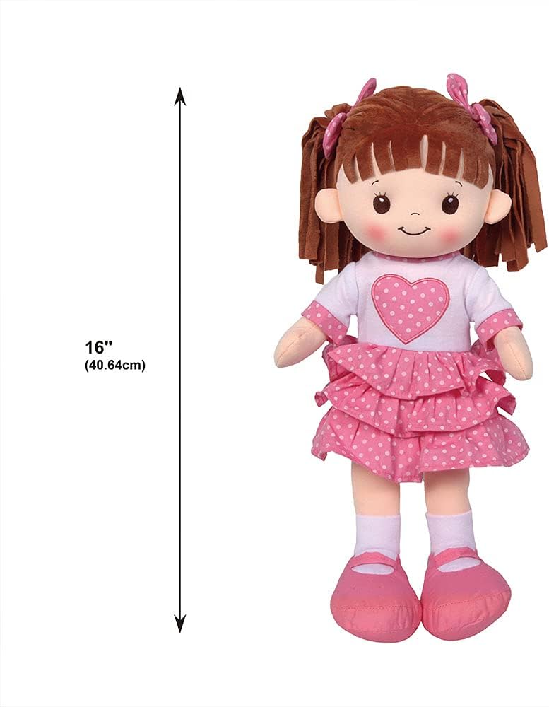 • CUTE & CUDDLY – sweet cakes doll is a beautiful stuffed rag doll with an ble polka dot dress that has an embroidered heart on top.